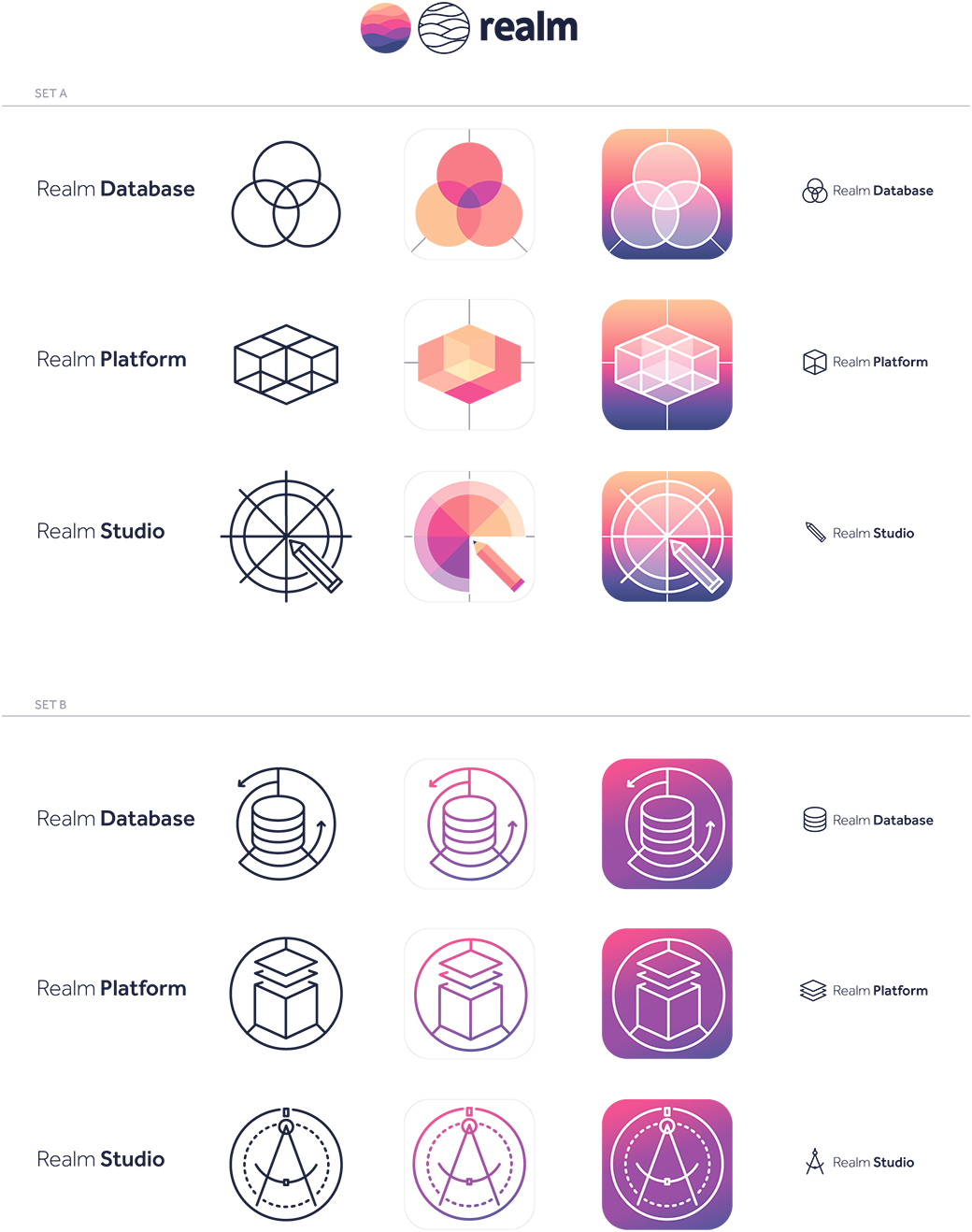 Identity design exploration for software product iconography.