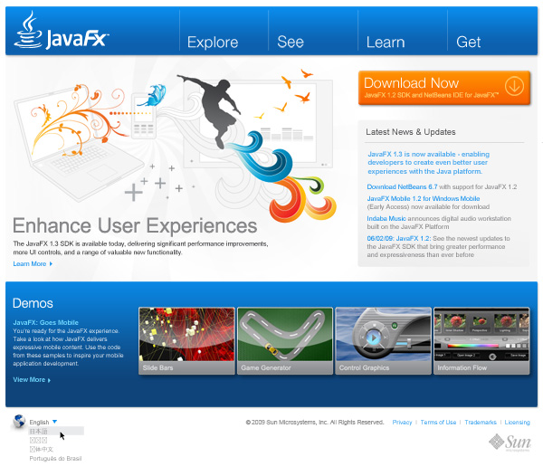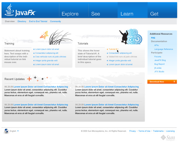 Development of standards and key brand elements as part of the redesign of the JavaFX website.